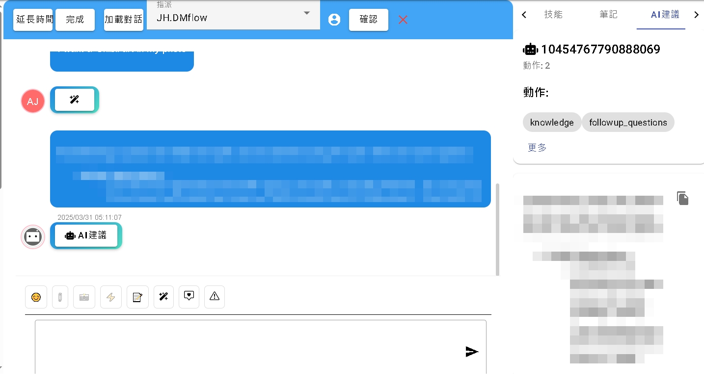 - Suggestion: The AI does not intervene in the conversation directly but acts as an auxiliary role, providing suggested search items or replies in the chat room for visitors to choose from.