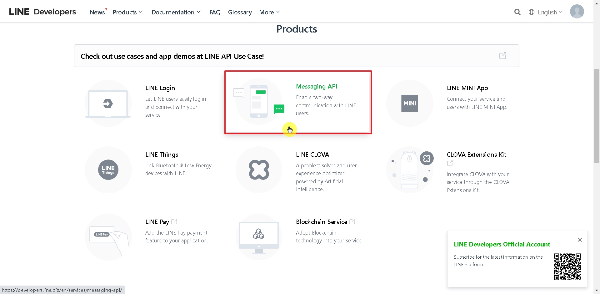 Find Messaging API tab.