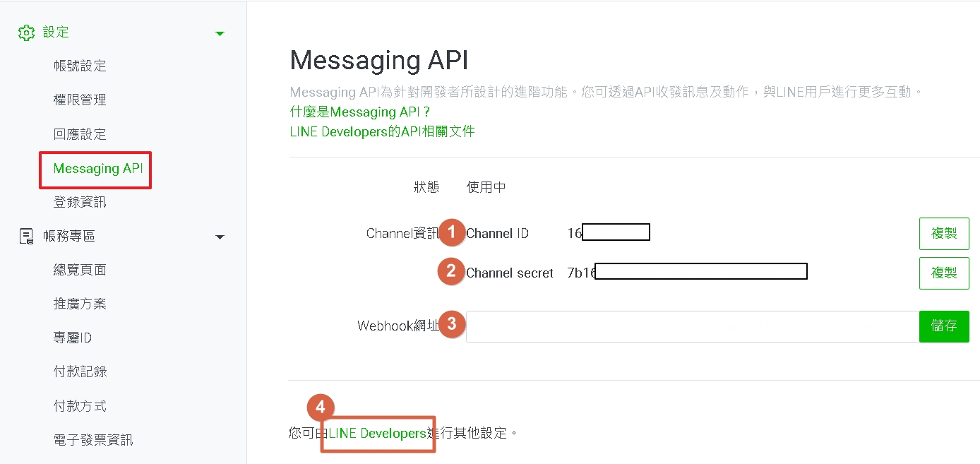 - Fill in the Channel ID, Channel Secret, and Channel Access Token you just obtained.
