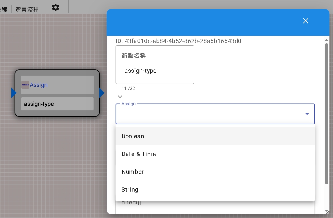 Except for the start node fixed named start, other nodes use UUID as unique identifiers.